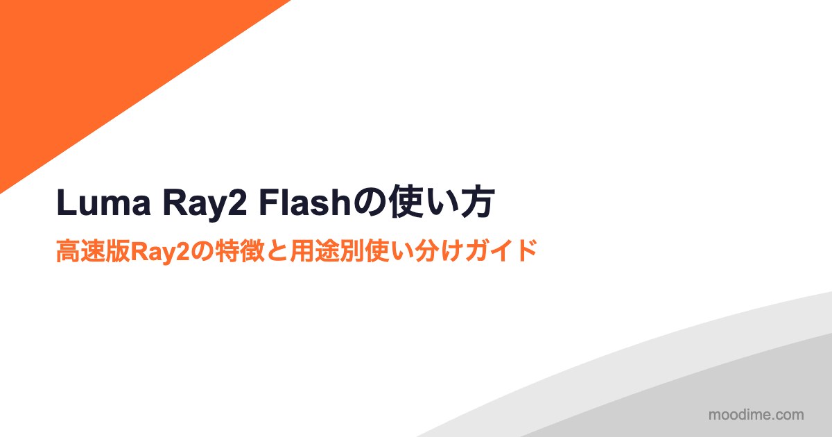 Luma Ray2 Flashの使い方|高速版Ray2の用途別使い分けガイド