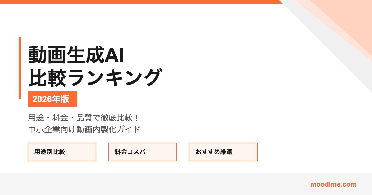 ▶ 自社に最適なツールの選定フレームワークは企業向けAI動画ツール選定ガイド2026|用途・予算・チーム規模別の最適解をご覧ください。