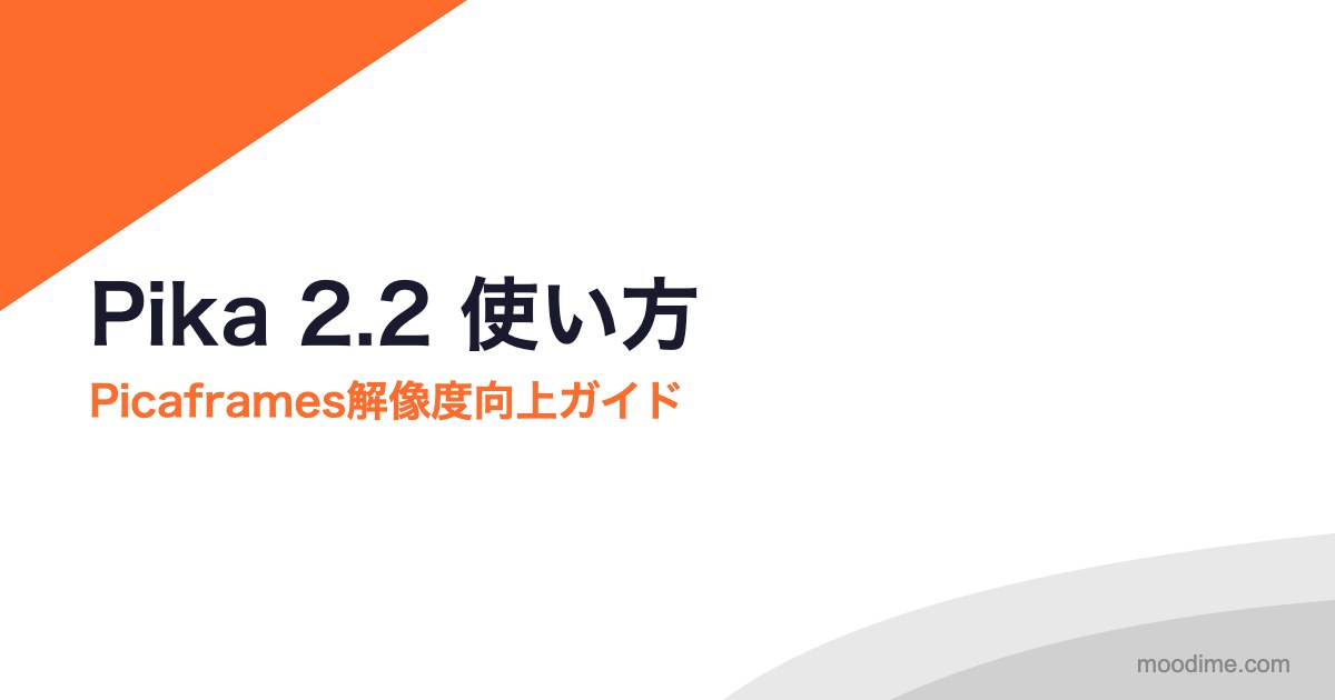 Pika 2.2は解像度向上機能「Picaframes」を搭載したモデルで、特に高品質な仕上がりが求められるマーケティングコンテンツや映像制作に適しています。Pika AI完全ガイドと合わせて参照してください。