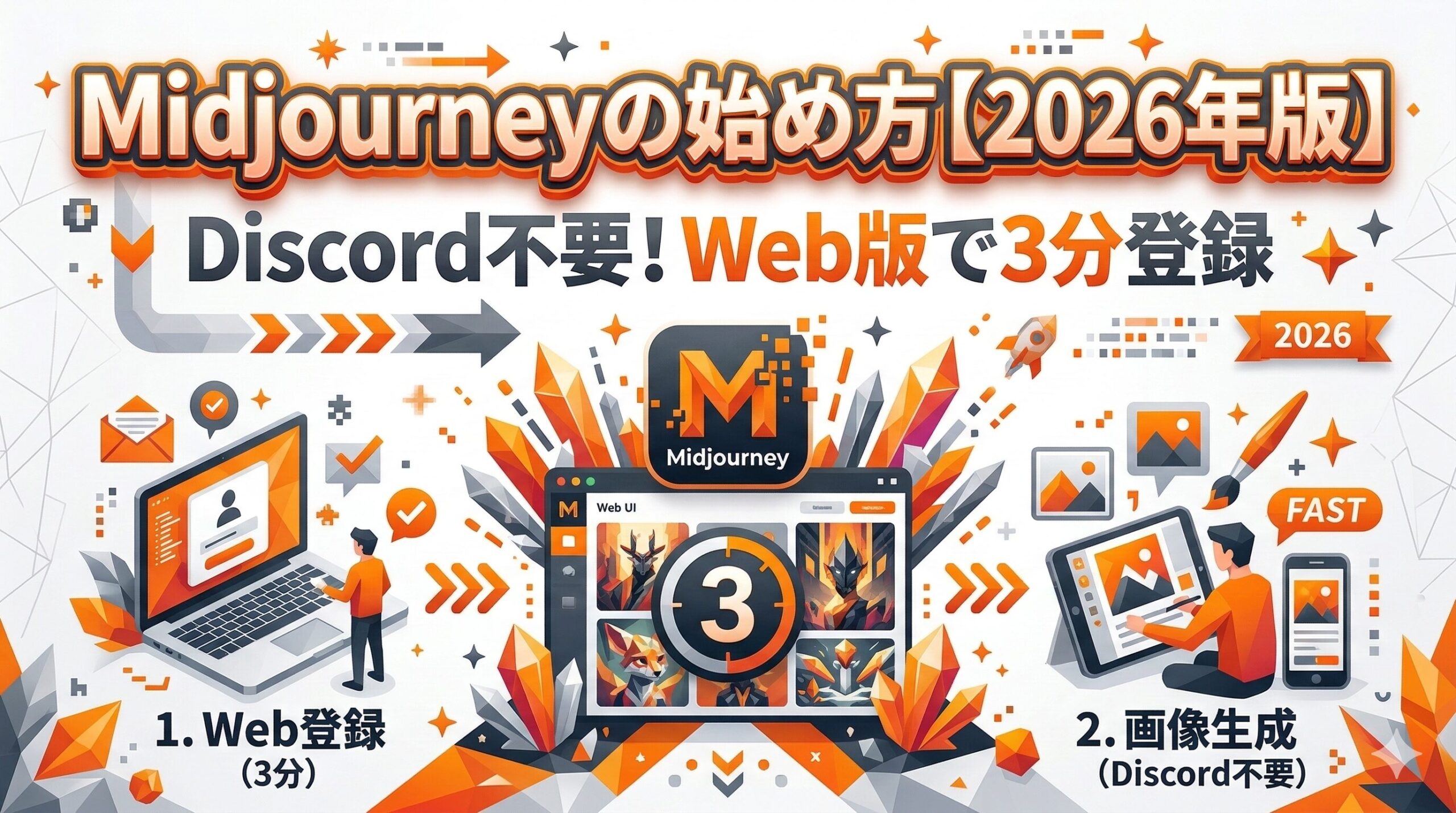 Midjourneyを始めるなら、DiscordとWeb版の2つの方法があります。2026年現在、初心者にはWeb版(midjourney.com)が圧倒的におすすめです。Discordの操作が不要で、ブラウザから直感的に使い始められます。
