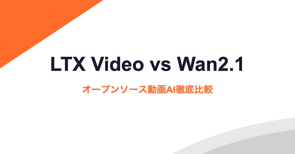 LTX VideoとWan2.1(旧CogVideoX)を用途・品質・速度・ローカル環境要件で徹底比較します。どちらのオープンソース動画生成AIを使うべきか迷っている方のための選択ガイドです。