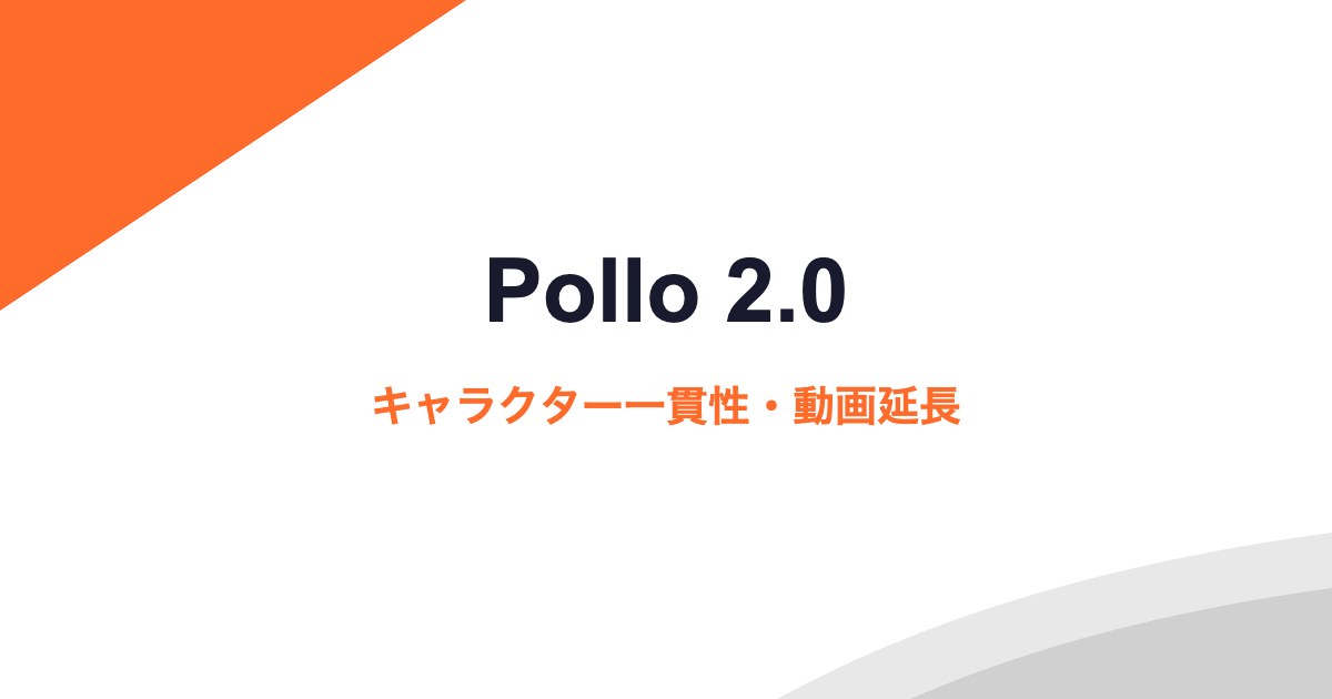 Pollo 2.0は、Pollo AIの第2世代モデルです。キャラクター一貫性機能と動画延長機能が新たに搭載され、複数シーンにわたる動画制作が可能になりました。本記事では、Pollo 2.0の特徴・使い方・活用法を詳しく解説します。