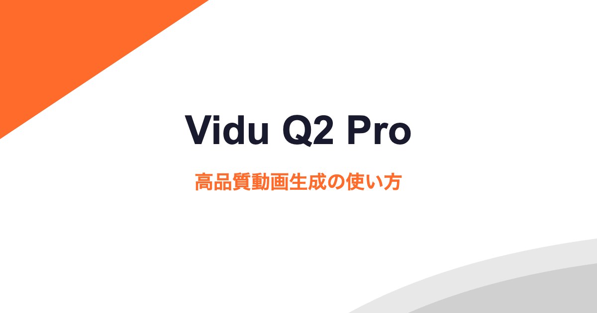 Vidu AIの主力モデル「Vidu Q2 Pro」は、品質と速度のバランスが優れた動画生成モデルです。本記事では設定方法からプロンプトのコツまで解説します。