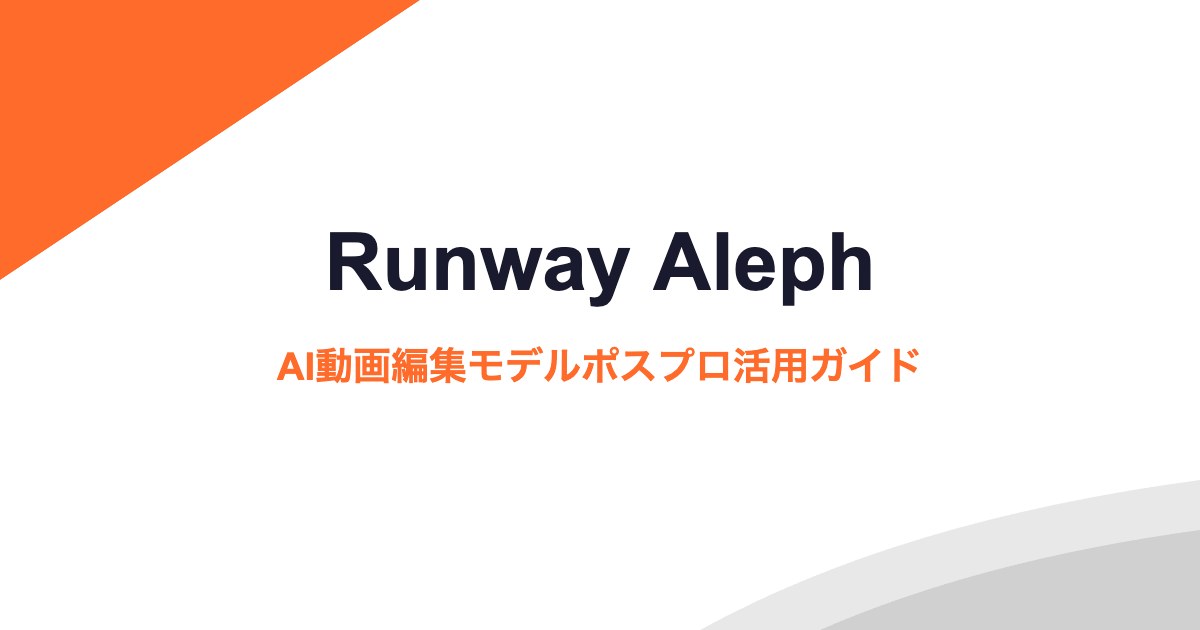 この記事では、RunwayのAleph(アレフ)モデルの特徴・使い方・ポストプロダクションでの活用法を解説します。動画編集に特化したAIモデルとして、プロのクリエイターにも注目されています。Runway AI完全ガイドも合わせてご確認ください。