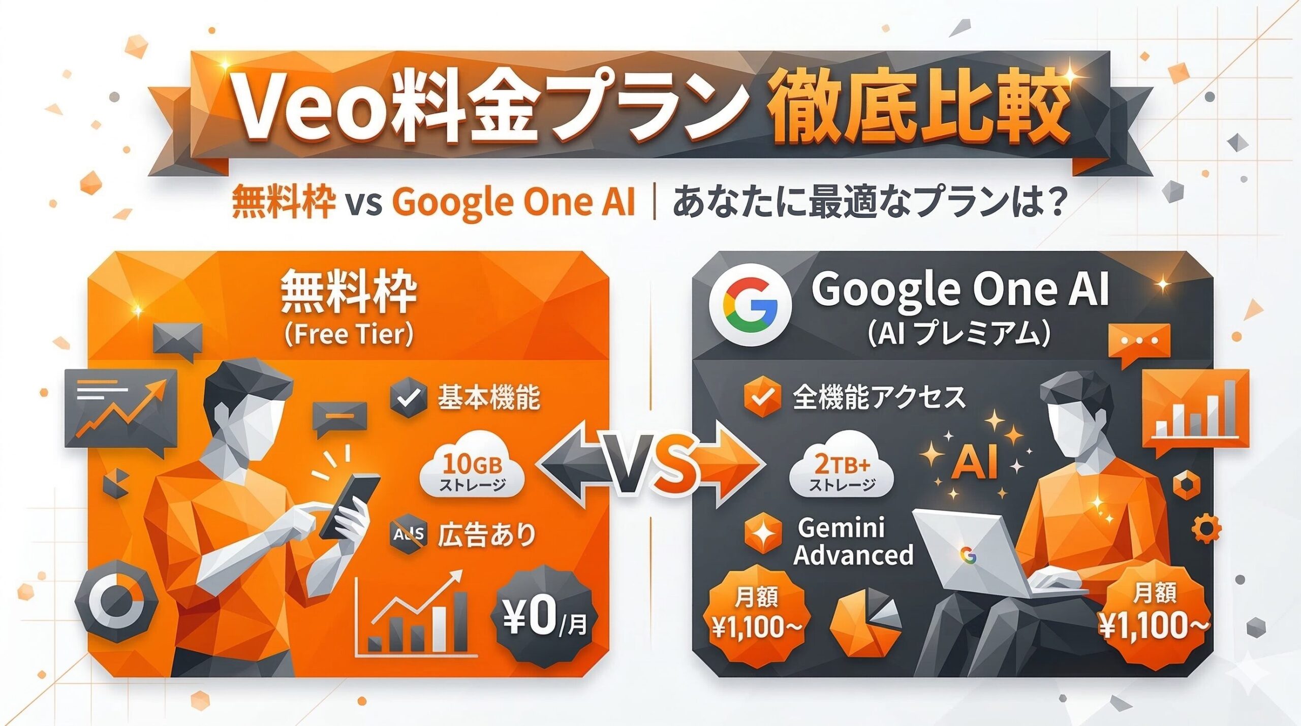 この記事では、Veoの料金プランを無料枠とGoogle One AIプレミアムプランに分けて徹底比較します。